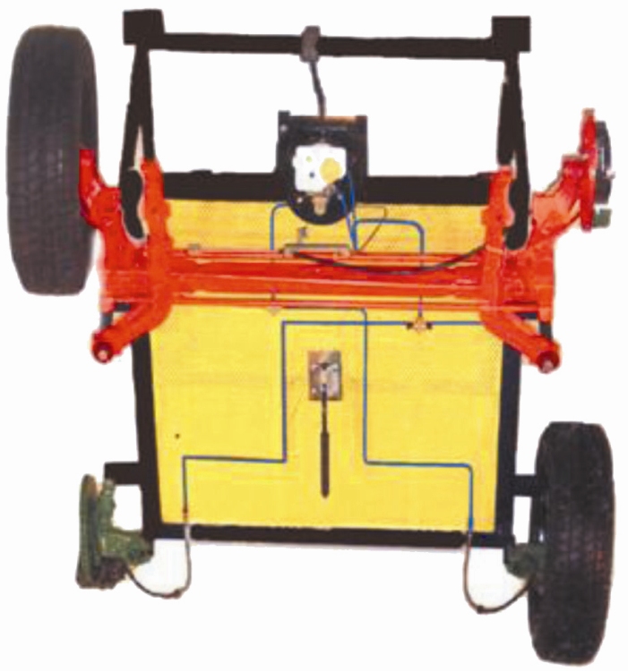 مشخصات فنی :مجموعه دارای شاسی فلزی با چرخ گردانسیلندر اصلی ترمز هیدرولیکی از نوع دو مداری-سیستم ترمز چرخهای جلو دیسکی –سیستم ترمز چرخهای عقب کاسه ای از نوع سیمپلکس-ترمز دستی کابلی متصل به چرخهای عقبدارای مکانیزم تنظیم –دارای بوستر خلائیمولد خلاء در مجموعه به صورت پمپ وکیوم الکتریکیمجموعه دارای نشاندهنده مقدار خلاء در بوستروفشار هیدرولیکی در مدار ترمز می باشدوهمچنین دارای مدار کنترل وفرمان |